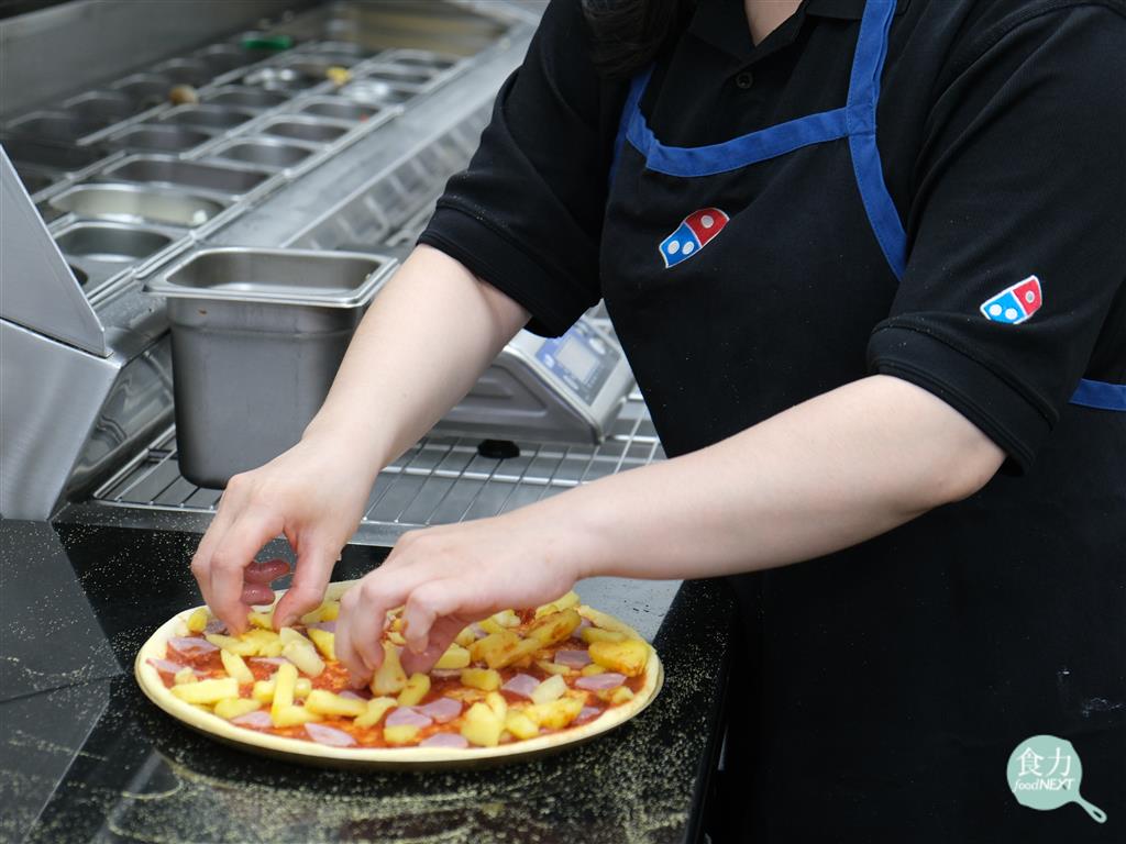 而進口鳳梨罐頭和冷凍鳳梨果丁所製作而成的夏威夷披薩又差在哪裡呢?首先,罐頭殺菌過程本身就會影響鳳梨風味及口感,冷凍果丁則高度還原,解凍後吃起來就與新鮮鳳梨幾乎無差別。此外,台灣達美樂採購部門協理盧金漪也提到,原本一箱鳳梨罐頭約20公斤重,大部分卻都是糖水,一罐3公斤多只有1.8公斤左右的鳳梨可供使用,而改為包裝更輕便簡單的冷凍果丁之後,不僅省下許多運費,也減少了每一個鳳梨披薩所產生的碳排。永續一直是台灣達美樂非常注重的議題,除了減少食材碳足跡,目前台灣達美樂門市也將外送機車逐步汰換成電動車。