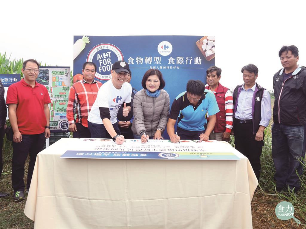 為貫徹此一目標,家樂福2018年11月28日再次宣布和小農合作,一口氣推出6項家樂福最引以為傲的家樂福嚴選生鮮農產品,其中更有首項有機農產品:家樂福嚴選玉米筍。為將這些優質農產品推廣讓民眾知道,家樂福於2018年11月28日在雲林古坑大力農場舉辦新品上市品嚐會,由家樂福總經理王俊超主持,和農民一同簽署食物轉型合作承諾,並邀請雲林縣長張麗善出席見證。