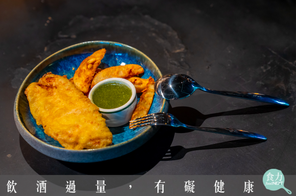 戰地炸魚排佐香菜青醬,用簡單的炸魚排搭派台式十足的香菜作為佐料搭配。(圖片來源:金門酒廠實業股份有限公司提供)