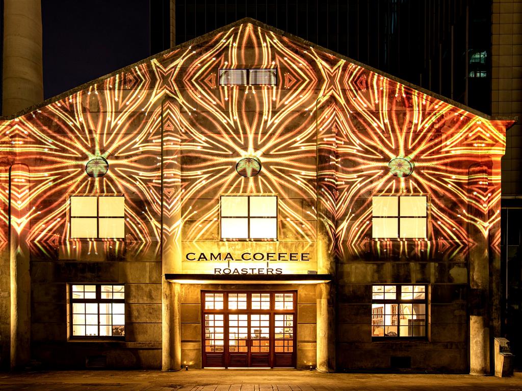 鍋爐房空間設計透過光雕投影為古蹟注入新生命,光雕部分更攜手Epson與天衍互動團隊內容共創,將咖啡風味視覺化,透過影像來切換日間及夜間的場域氛圍,不僅保留古蹟之美,更傳遞品牌故事。讓每位踏入豆留文青的消費者,皆能享受沉浸式的咖啡體驗,並重溫1940年代的復古感性,也替夜晚的松菸文創園區注入一股活水,發展夜間經濟,cama café盼能成為引領第4波咖啡浪潮的台北最潮咖啡聚所!