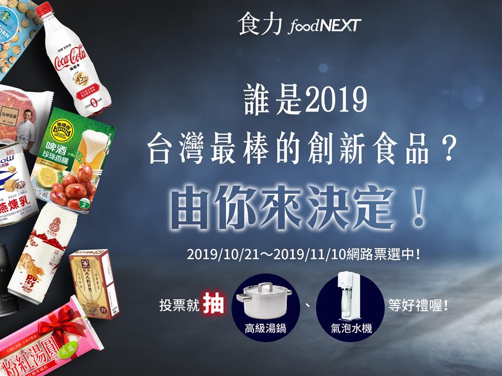 你心目中最佳的創意食品是什麼?即日起至2019年11月3日,民眾可至「2019FIA食創獎」官網網站(https://fia.foodnext.net/index/vote),於30件創意新品中票選出最具獨特性及創意的食品,還有好禮可以抽獎!