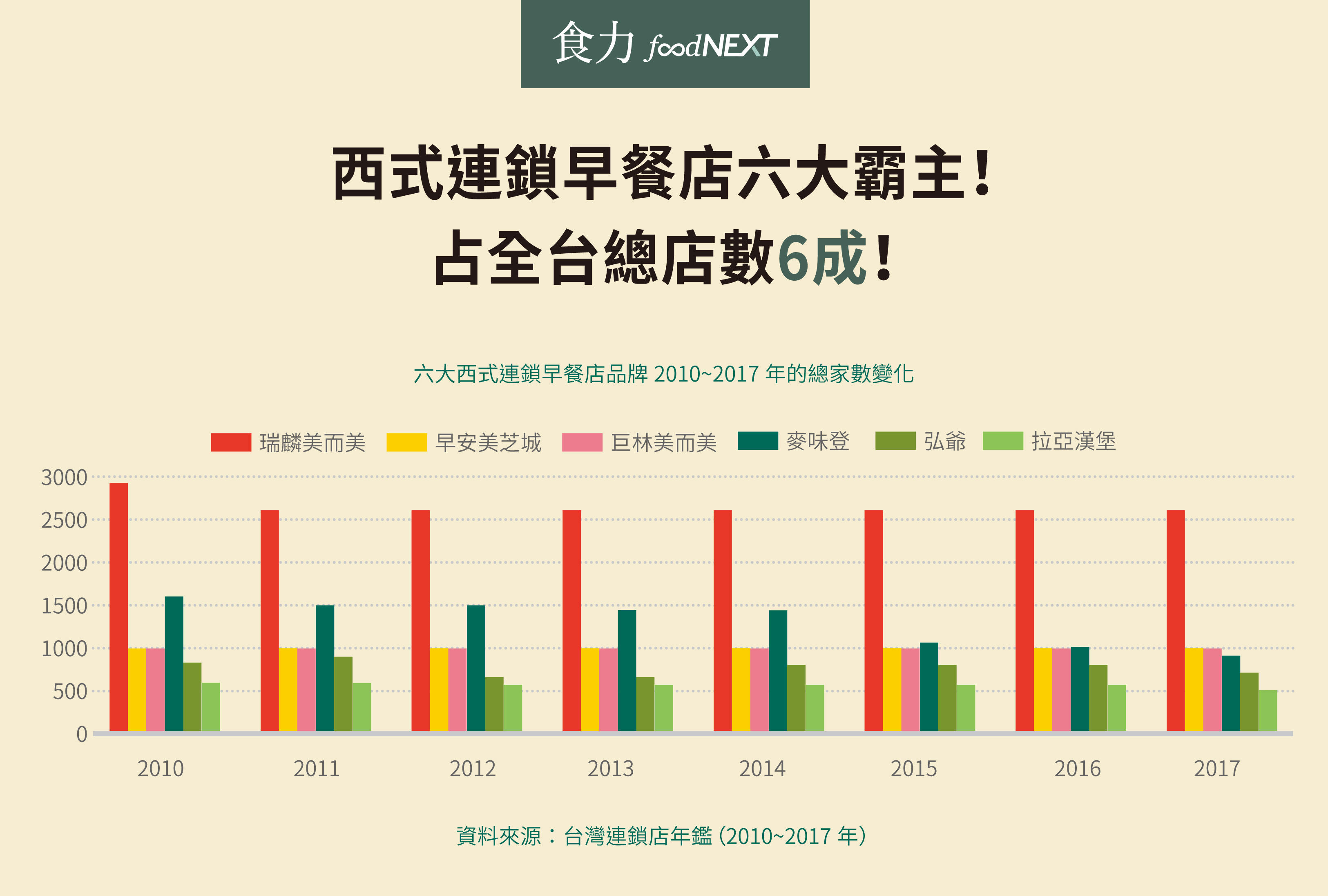 你可知道台灣到底有幾家西式連鎖早餐店嗎?答案是10394家,換算起來,平均每2213人就有一家,密度逼近連鎖超商,堪稱是台灣的「轉角奇蹟」!