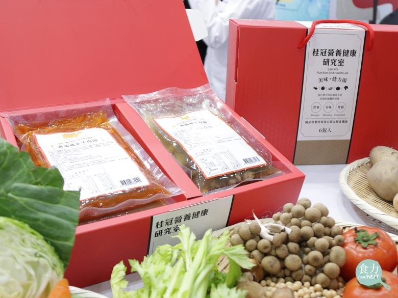 以桂冠最擅長的冷凍技術製成的系列健力湯,每碗湯品設計含有30公克左右的蛋白質、9公克的膳食纖維,只需簡單微波、水煮復熱,即可食用補充蛋白質。王振宇說道,在過程中其實每一步都是新的學習,「我們朝健康營養新領域邁進,但是這個過程不急,一步一步慢慢做好。」