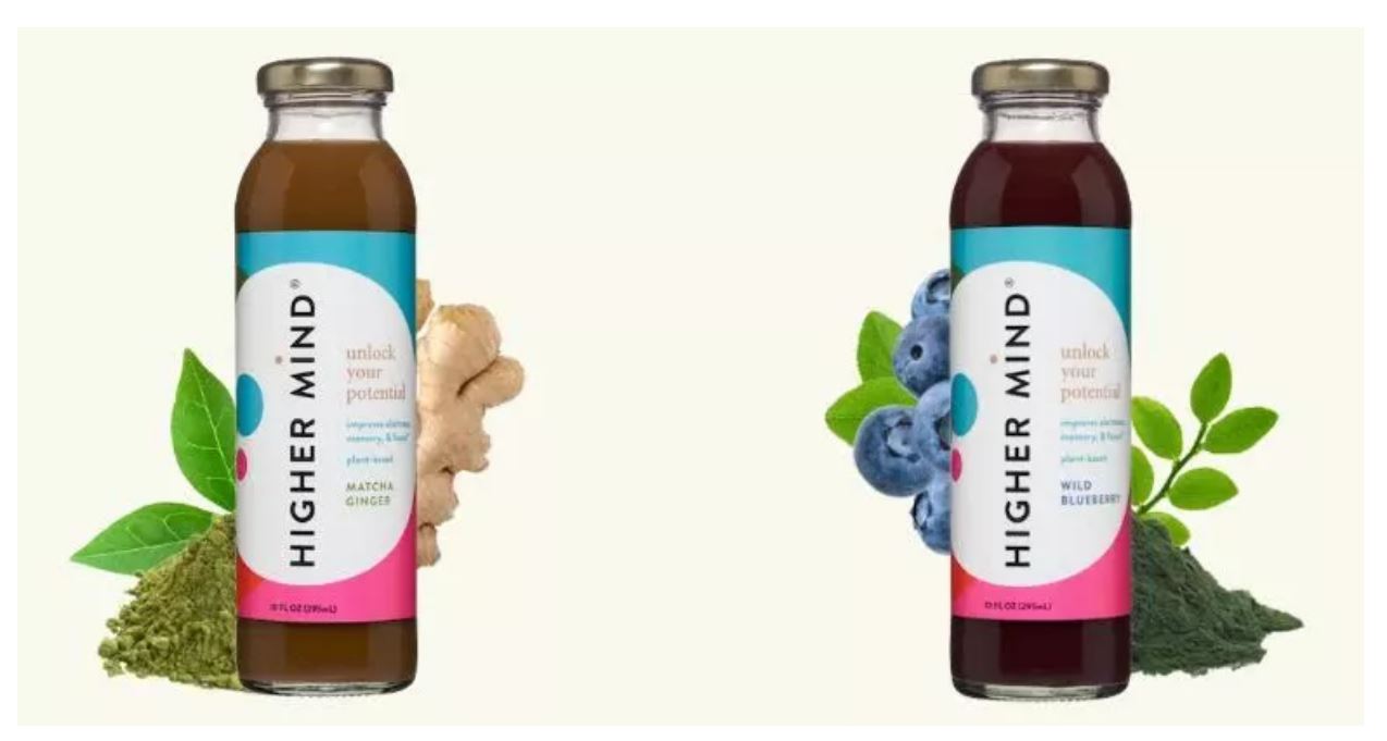 HIGHER MIND這款益智功能飲料聲稱能提高警覺性、記憶力和注意力,同時還能長期改善大腦健康。目前僅有兩種口味可以選擇,抹茶生薑(Match Ginger)和野生藍莓(Wild Blueburry)。