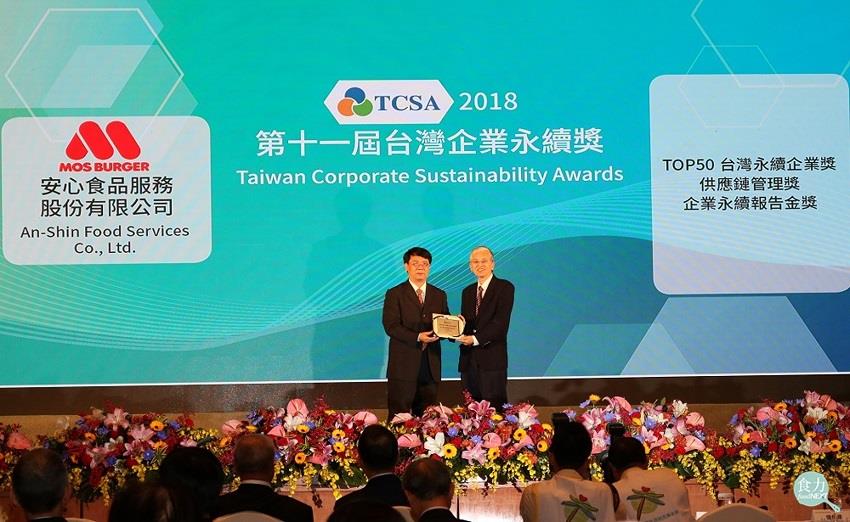 台灣永續能源研究基金會於2018年11月22日頒發第11屆台灣企業永續獎,本屆共有148家企業參獎,安心食品服務股份公司-摩斯漢堡(簡稱安心食品)獲得「企業永續報告金獎」、「綜合績效TOP50獎」及「供應鏈管理獎」等三項大獎,在企業經營及實踐企業社會責任上獲得肯定。