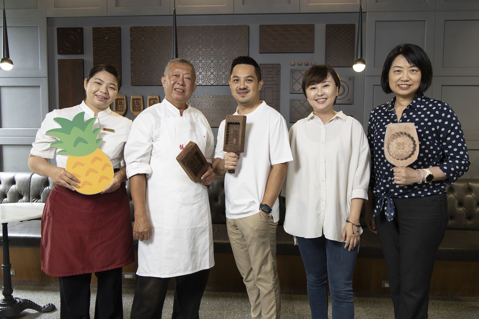 由左至右為:舊振南漢餅文化館店長陳佳妙、漢餅師傅張晉源、總經理李立元、品牌總監郭念鑫、人力資源發展經理楊凱婷。(圖片來源:cheers提供)