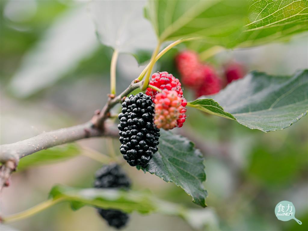 在育種到採收的整個過程,順天堂投入大量心力,讓高品質原料能穩定產出,作為保健食品的堅強後盾。以桑樹種植為例,首先篩選高產、抗病力強的植株來育苗,也針對其植株的共生菌機制進行研究,確認共生菌菌種與植株健康度的關聯,以優化種植的植株品質,2024年3~4月產出的桑葚,產量約為10噸,果碩紫黑汁甜,食用者大為驚艷。