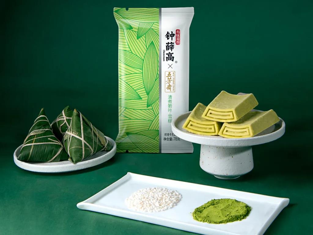 這款清煮箬葉雪糕是鍾薛高攜手粽子品牌五芳齋,打造的粽香牛乳口味的雪糕,每片雪糕裡含有2片江西大山箬葉熬煮成的汁液,融合呼倫貝爾草原純牛奶,清幽粽香混合淡淡奶香,同時還加入了青汁粉,使得雪糕整體呈現悅人的青綠色。此外,雪糕內添加了黑龍江糯米,並用海藻糖蜜製,帶來香甜爽滑有嚼勁的口感,輕咬一口,清新粽香透出淡雅糯米香,回味乾淨舒服。在包裝上,這款雪糕選用了和雪糕一樣清新的綠色,並點綴充滿設計感的粽葉圖案,十分吸精。