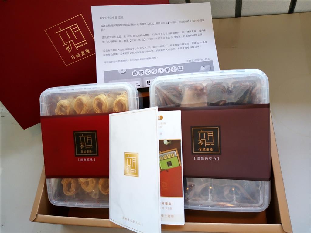 「六月初一」的8結蛋捲是近年火紅的網購食品品牌,與金馬57共同推出的8結蛋捲「金馬影展聯名禮盒」更是近期討論熱點。全台最大試吃平台「食驗室」實測「8結蛋捲禮盒-【原味+巧克力】精美禮盒組」,於滿分10分中,獲得綜合評分9.0分的亮眼成績。