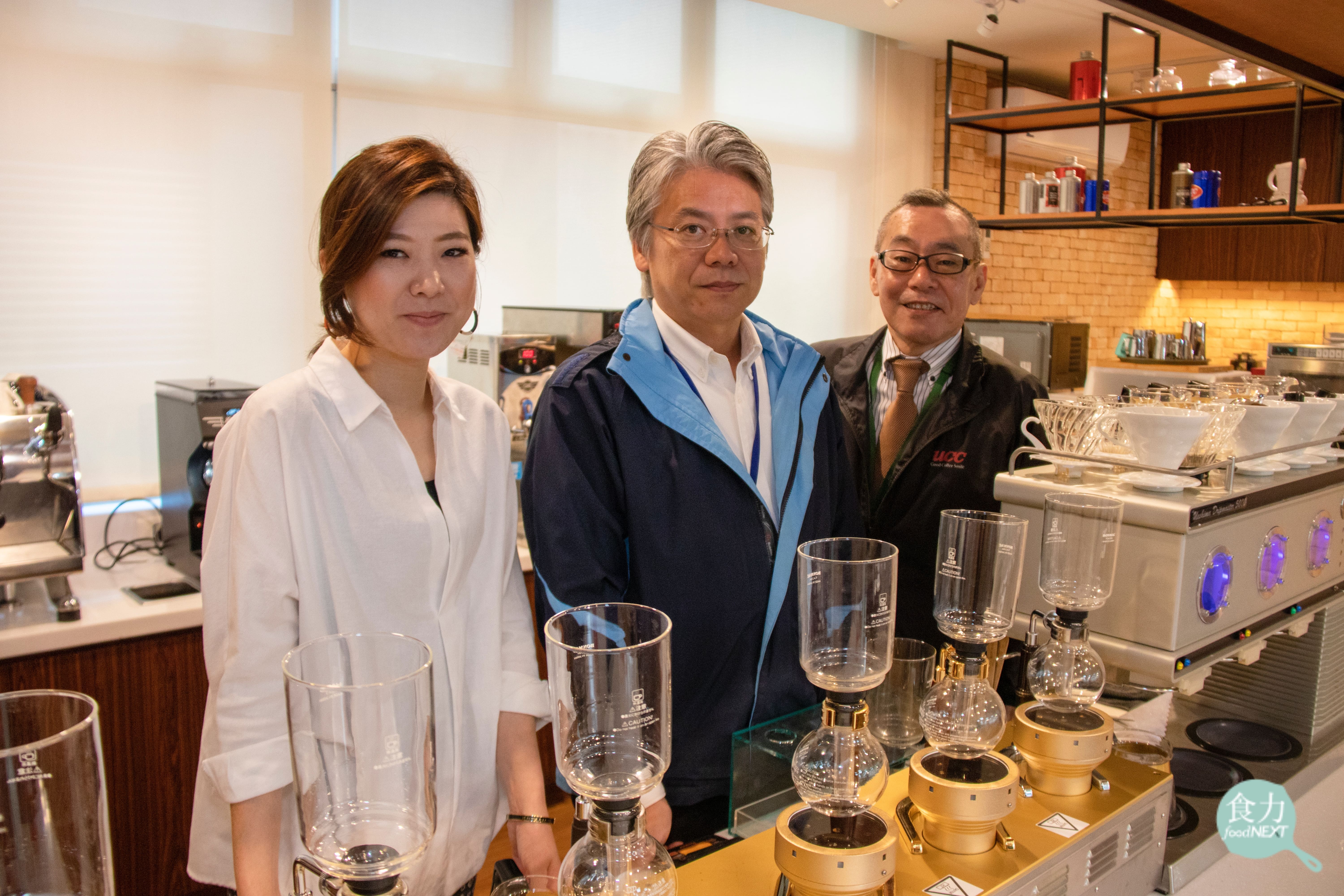 左起為UCC企劃專案課長楊衣姍(2017世界虹吸咖啡大賽冠軍)、總經理堀江昌平以及副總經理田所啓顯。