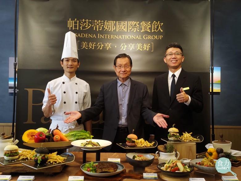 通膨時代來臨,高雄老字號帕莎蒂娜仍推出以多樣單點、飽足份量創意義式料理。董事長許正吉(中)、主廚林國全(左一)、烘焙部經理蔡宗君(右一)。(張語屏攝)