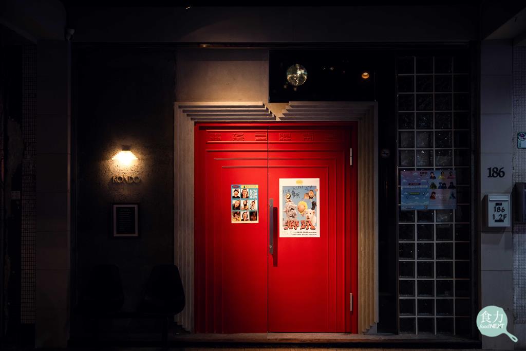 「Kondo」創立於2023年,以「復興南路最紅大門」為人所知,而此正是Kondo的入口,原構想是設計成「Condo(公寓)」的紅色大門,卻使得外觀看起來昂貴且不像酒吧,讓客人常常不敢進來,然而這扇大門卻也成為Kondo的標誌、運將大哥不需地址即可指認的特色。