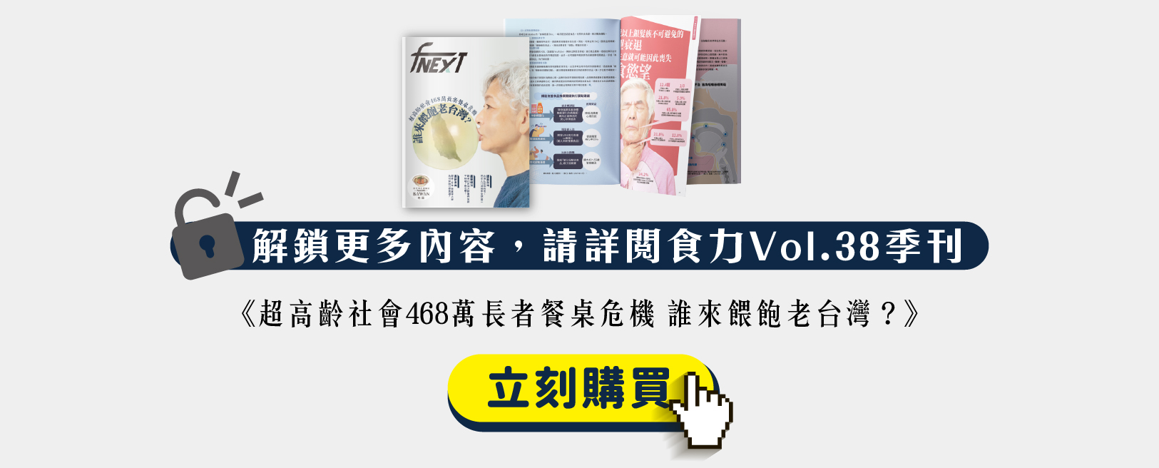 【更多銀髮飲食精彩探討,請詳閱食力Vol.38季刊《超高齡社會468萬長者餐桌危機 誰來餵飽老台灣?》】