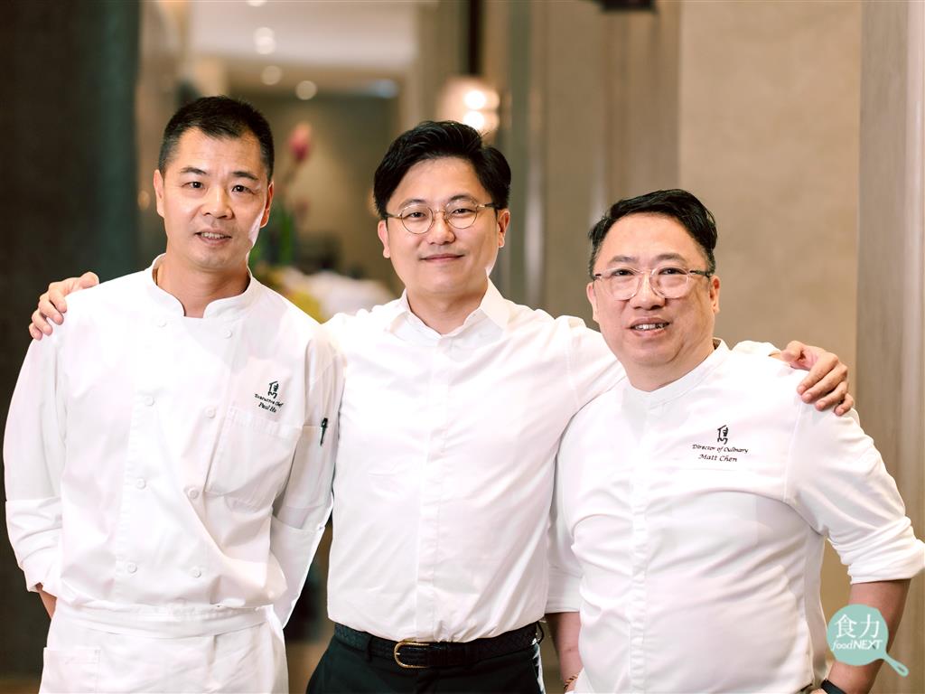 由左到右為萬象餐飲執行長洪嘉聰、「雋GEN」餐飲總監陳泰榮與行政主廚胡鑑波,為了復興傳統粵菜手藝,共同打造了高雄第一家「粵菜Fine Dining」的新型態餐廳。(張偉明攝)