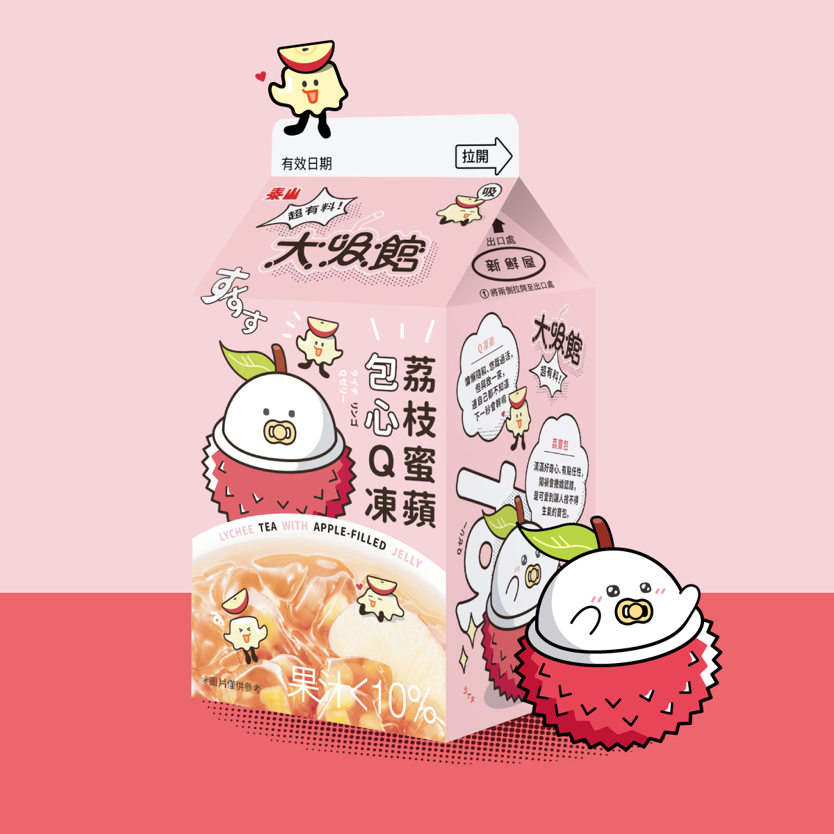 泰山企業推出「大吸館 荔枝蜜蘋包心Q凍」產品,以台灣荔枝與蘋果香氣疊加綠茶基底,呈現兼具果香層次與茶韻的夏季風味創新。(圖片來源:泰山企業提供)