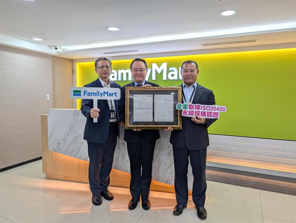 全家便利商店宣布通過ISO 20400:2017永續採購指南符合性查驗,成為全國首家達成此國際標準的便利商店。2026年2月24日由第三方公證單位英國標準協會BSI於全家總部舉行授證儀式,BSI東北亞區董事總經理謝君豪授證,由全家總經理薛東都代表受證。