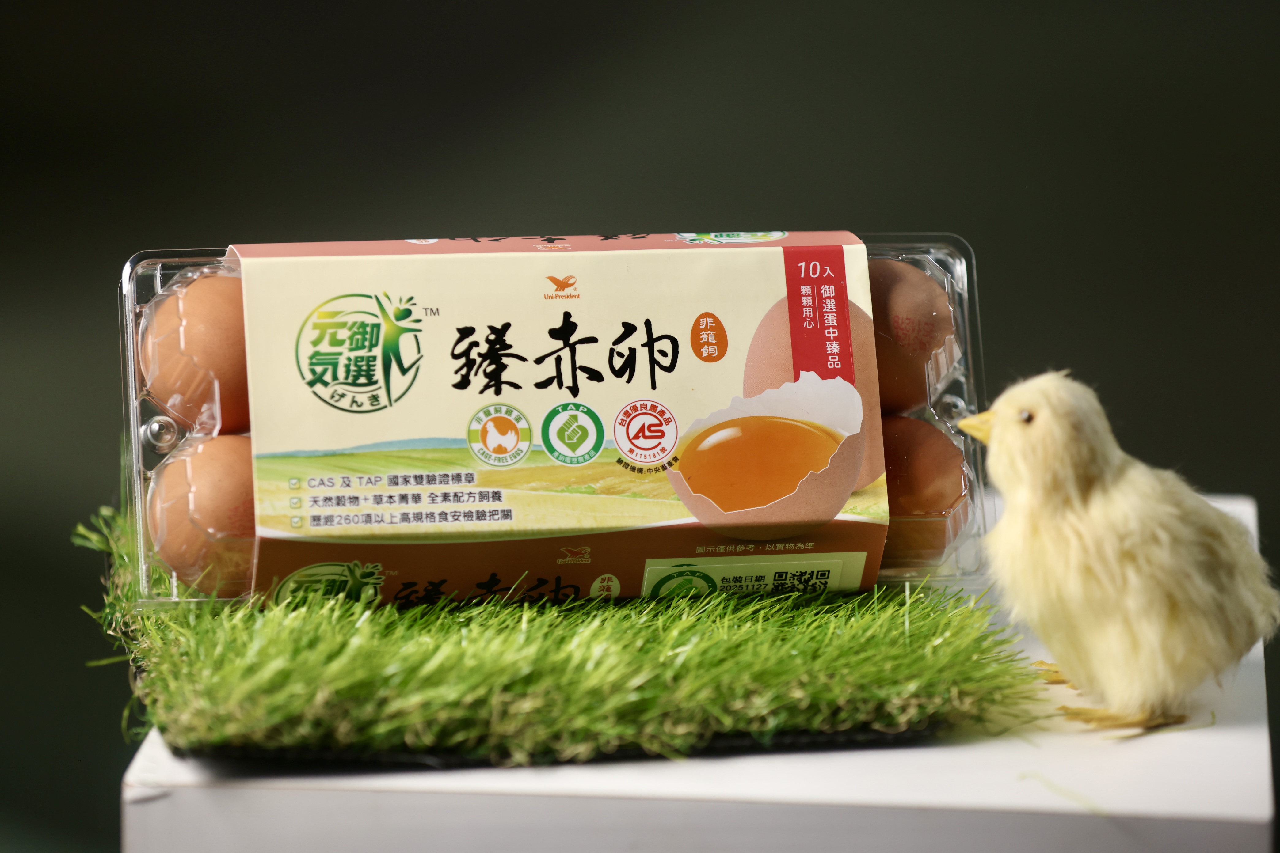 統一集團將推出「元氣御選」臻赤卵(非籠飼褐蛋)。(圖片來源:家樂福提供)