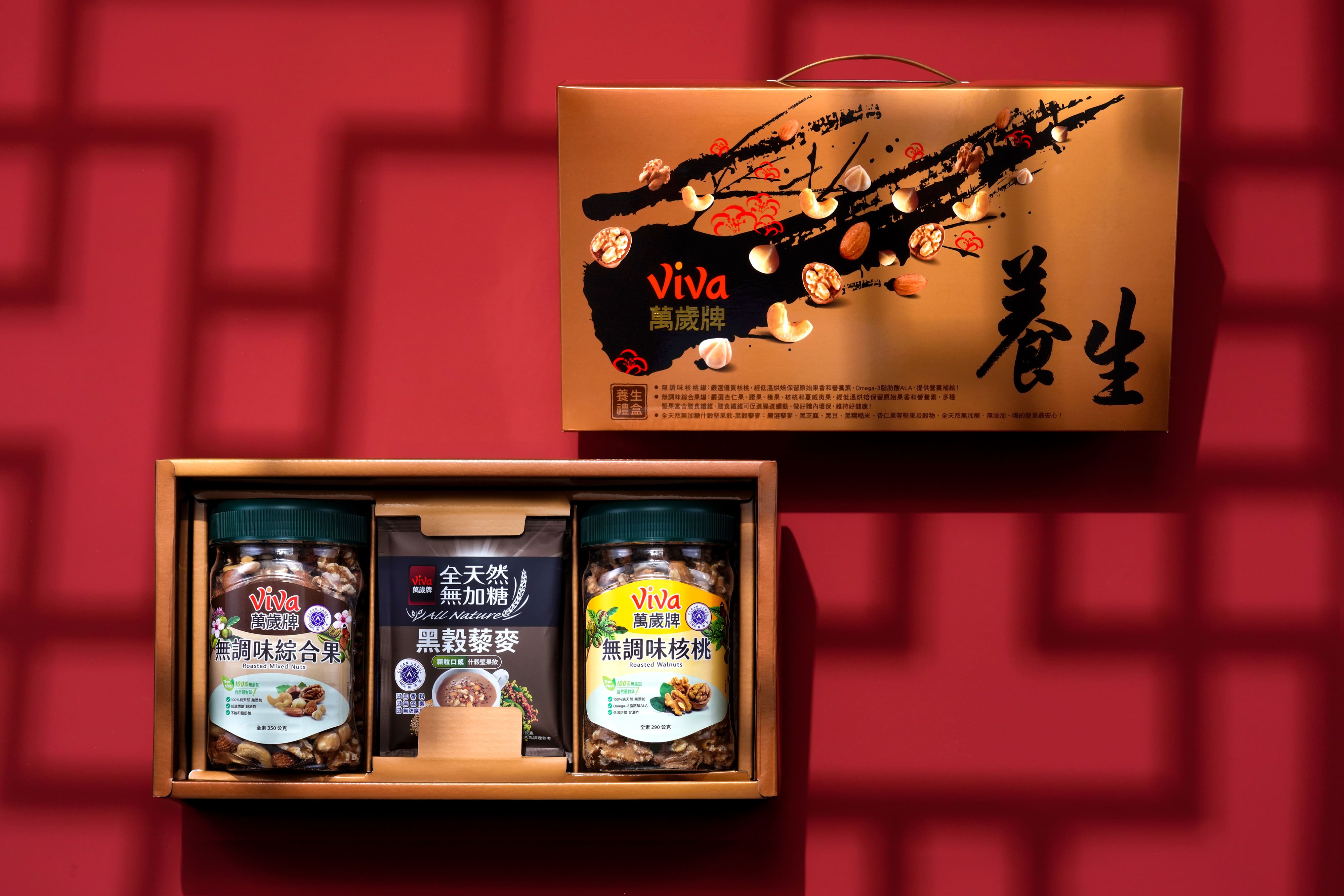 萬歲牌「養生堅果禮盒」,集結無調味綜合堅果、無調味核桃與並搭配全天然無加糖堅果飲,契合市場健康送禮趨勢。(圖片來源:聯華食品提供)