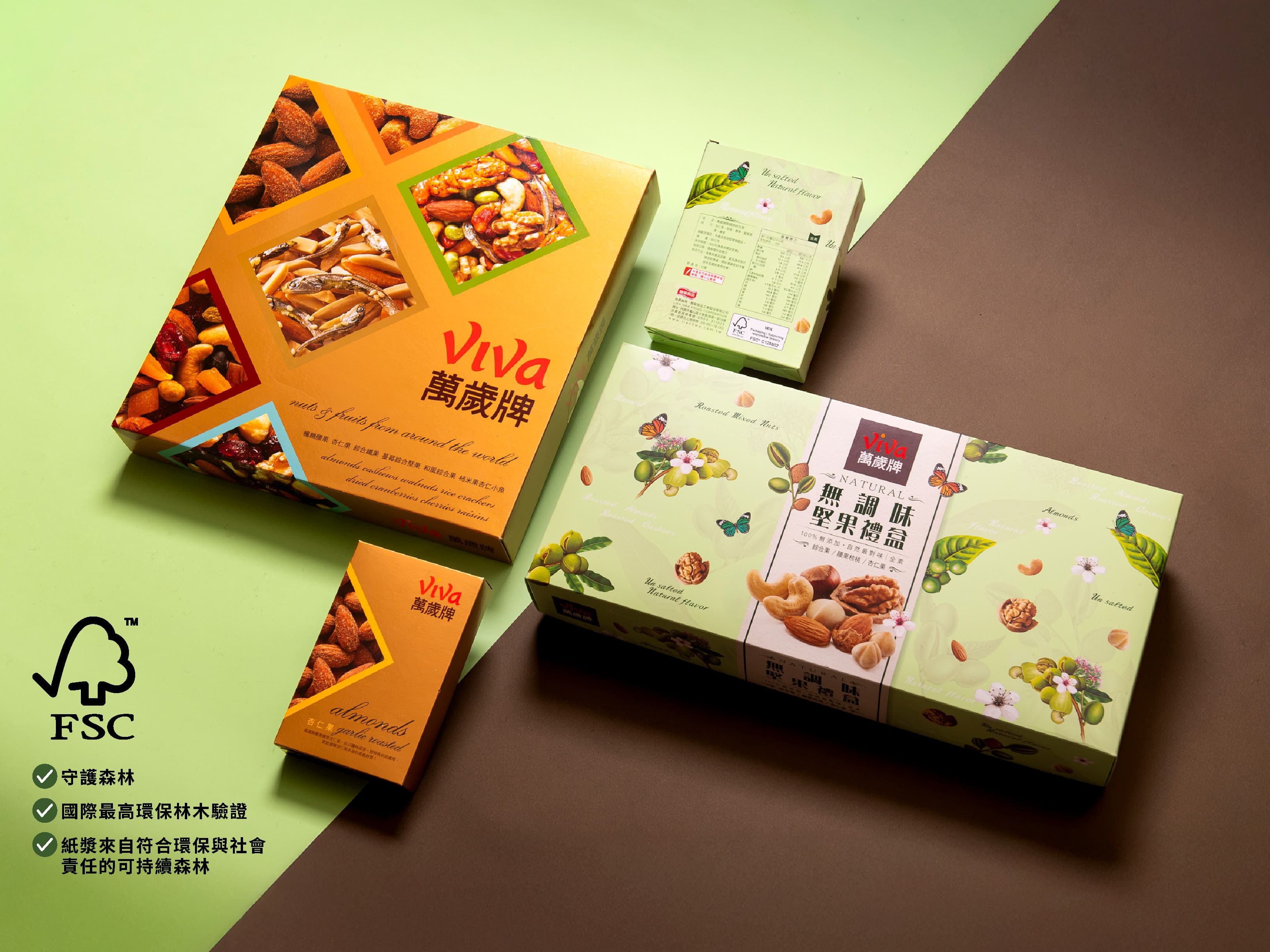 國內堅果食品業者近年持續升級包材選用,多款年節禮盒採用FSC認證環保紙材,在送禮質感與環境責任之間取得平衡,其中「無調味堅果禮盒」精選杏仁果、綜合果、腰果核桃三種無調味堅果,從裡到外落實天然準則,另外經典人氣「堅果禮盒」以FSC認證包裝呈現,一次享有多樣化的美味組合:堅果、果乾、小魚、米果,易入手、送禮不失禮、不失面子,讓消費者在傳遞年節心意的同時,也能實踐對健康與永續的共同重視。
