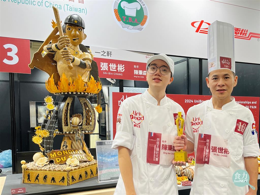 「只睡了一個半小時,凌晨4點10分就坐在會場(南港展覽館)外面等了!」5點半開賽、在歷經8.5小時製作19款麵包後,烘焙資歷23年的一之軒烘焙坊主廚張世彬以「零缺失」的高評價奪下「2024 UniBread烘焙王麵包大賽暨MONDIAL DU PAIN世界麵包大賽台灣選拔」冠軍,其助手陳秉森也獲得「最佳助手獎」殊榮,顯示團隊的好默契。雖然略顯疲累,但更感受到冠軍的重量,「覺得責任更大,給我這次機會可以代表台灣把台灣的烘焙帶給全世界!」張世彬表示。