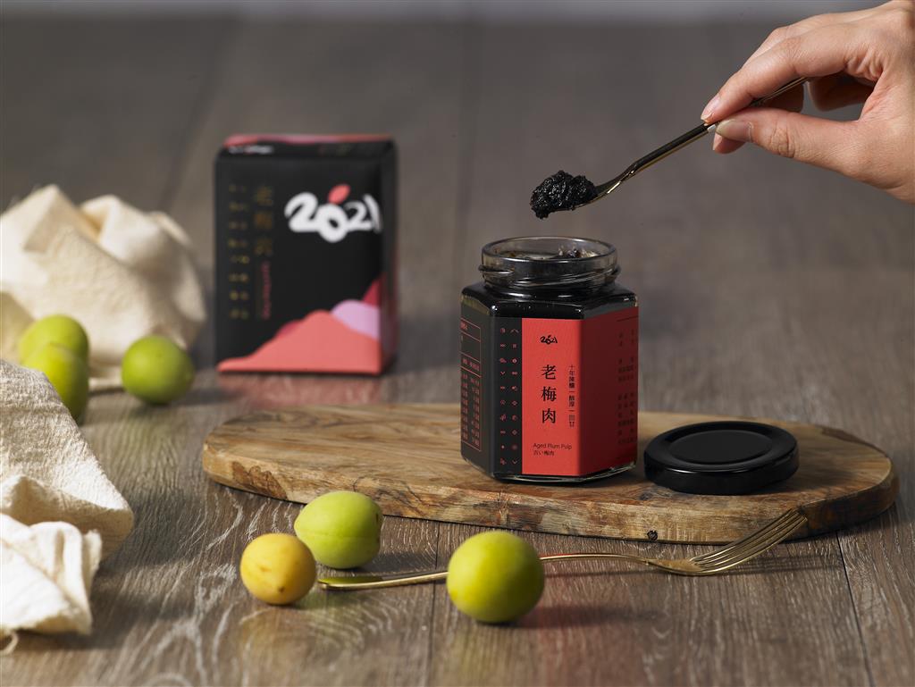 2021社會企業各式創新梅商品可分為三大類,分別為十年老梅、梅果釀以及伴手點心。十年老梅產品系列分別有老梅肉、老梅釀、諾麗老梅釀,此3款商品屬於養身保養為訴求,對於腸胃道保養、促進代謝、增進食慾有所幫助。其中又以「老梅肉」最受消費者喜愛,將釀製十年的老梅,開桶後以手工去籽再融入陳年巴薩米克醋製作成養身蜜餞,另外也可以搭配小番茄、原味優格一同食,健康又美味!
