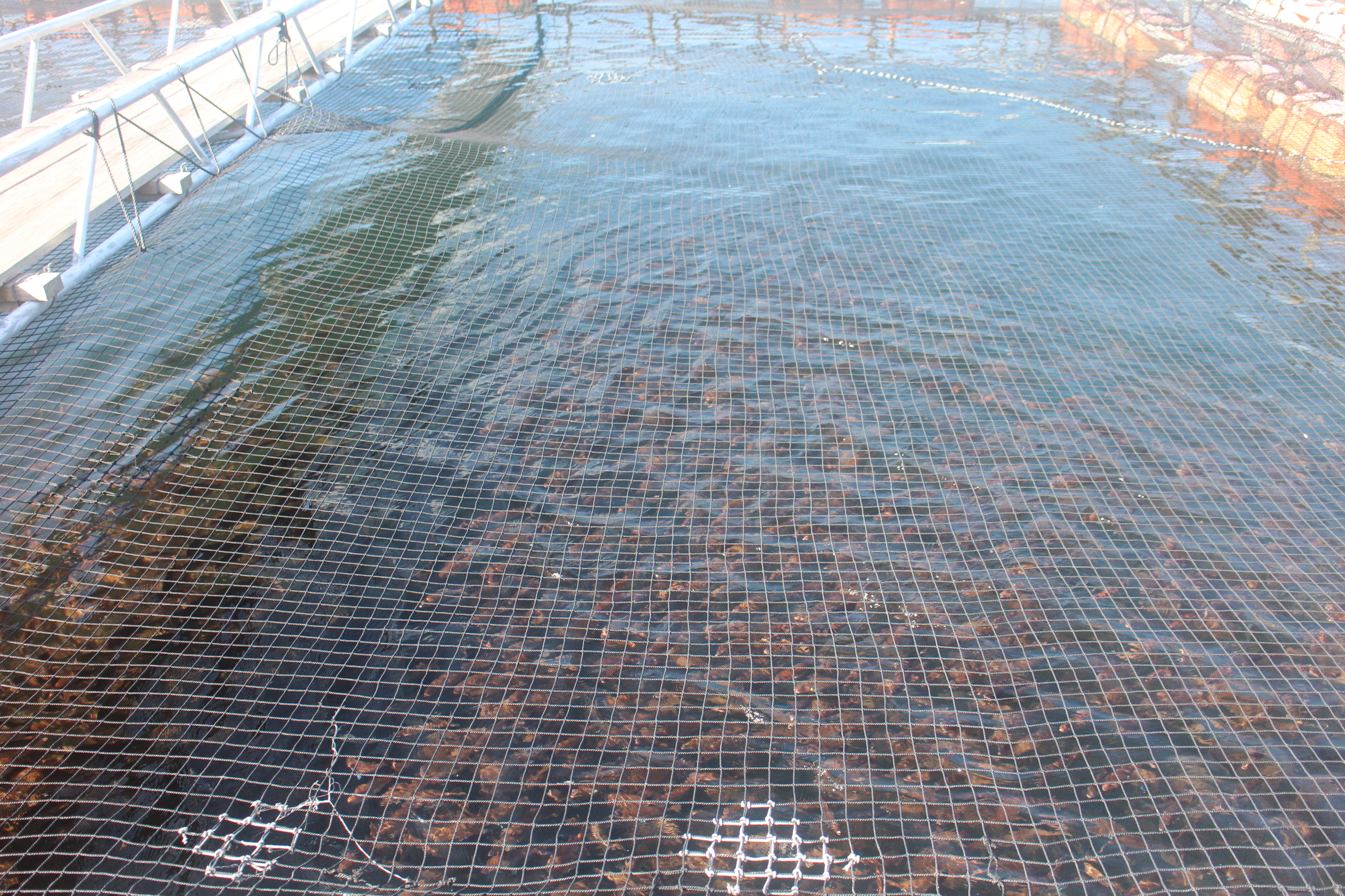 他表示,養殖第二年時要每兩天投餵一次,水面有波動,表示鰤魚吃得好。養殖池長和寛各10公尺,深度6.5公尺,約放養3000尾,採取低密度養殖,減少魚的壓力,會長得更健康。他說,「如果養太多,尾巴或魚鰭會互相碰撞,會慢慢變小。有活動空間的魚,尾巴會長得比較長,後半身的身型會比較長。」