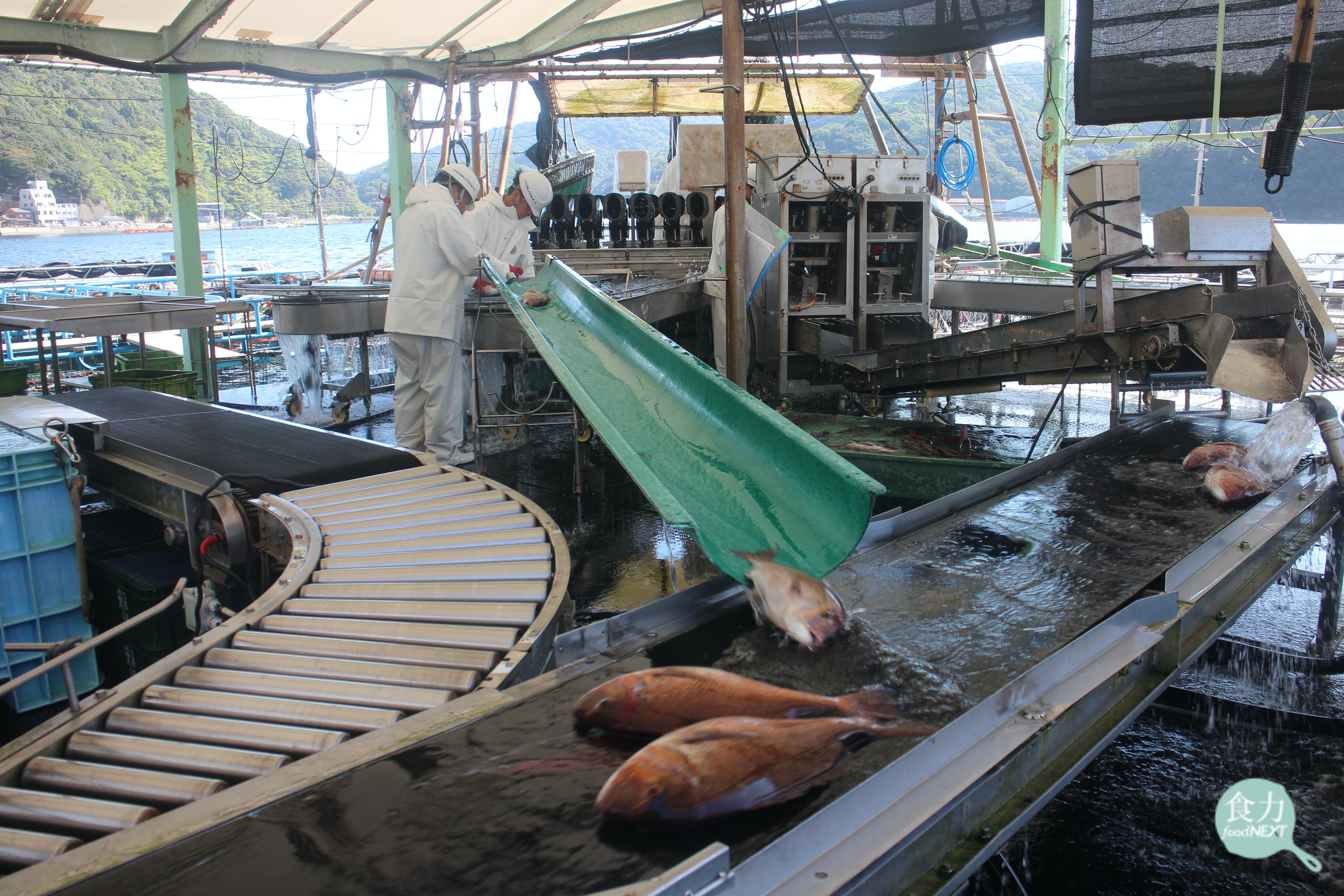ハマスイ(HAMASUI)公司加工處理製程,魚隻依重量和大小的不同,採分流處理,有效加速處理流程,保持魚肉鮮度。(余麗姿攝)