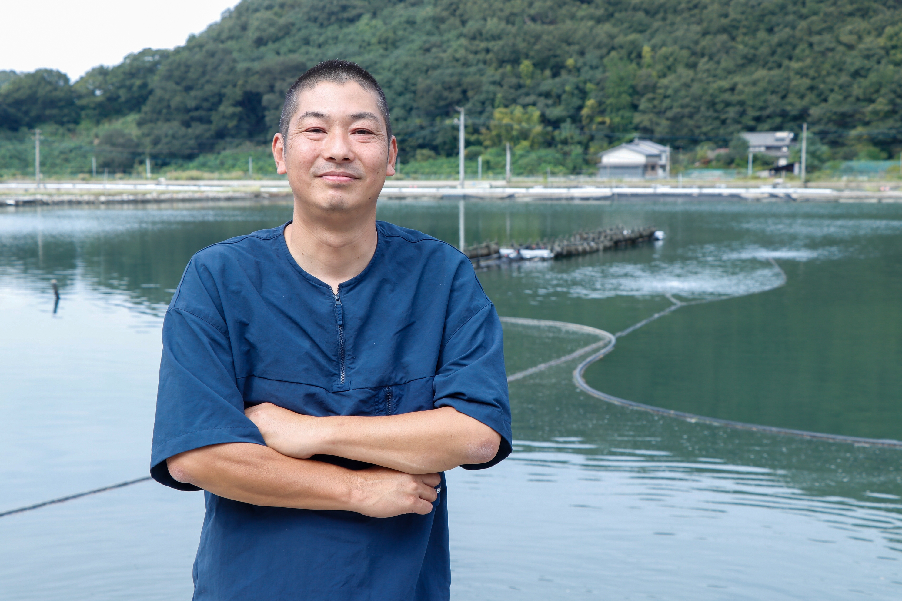 日本海上箱網養殖的鯛魚,愛南町有許多鯛魚養殖業者,安高水產規模最大,是日本第三大鯛魚養殖量公司。社長安岡高身行駛漁船在宇和海上,愛南漁業協同組合(簡稱愛南漁協)販賣促進部長岡田孝洋說,「小海域是宿毛灣,那裡就是太平洋,這裡地點更南方,更靠近太平洋,黑潮豐富,海流不停循環,魚隻有很大活動量,魚肉會緊實又美味。」