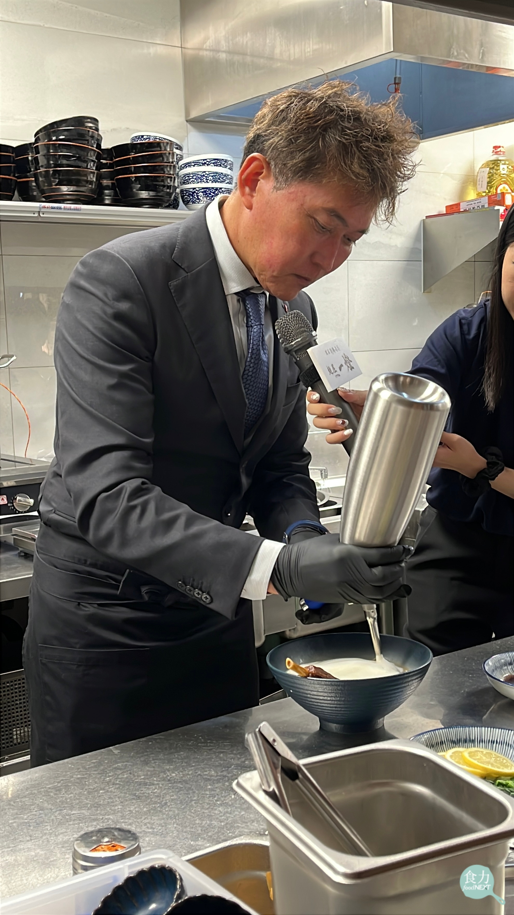對坂本而言,這次泡系拉麵的研發,並不只是一次海外限定企劃,而是一個能重新檢視麵屋一燈風味結構的過程。他指出,泡系形式本身並不是為了追求新奇,而是讓原本厚重的湯體,有更多層次的出口。「拉麵的湯頭如果只有一種風味,其實很容易膩,」坂本談到,「透過泡泡的形式,把香氣、油脂與口感拆開,反而能讓整體變得更立體,也更耐吃。」