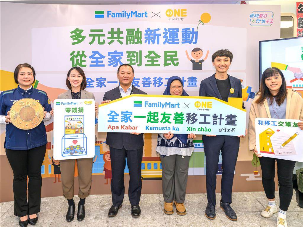 於12月18日國際移工日前夕,「全家」與深耕東南亞移工教育的非營利組織One-Forty攜手,宣佈啟動「2025一起友善移工」零錢捐計畫,將透過「移工在家學中文」及「移工筆友校園暨全民教育」兩大行動,促進文化融合與共創包容社會,鼓勵民眾即日起可至「全家愛心大平台」(店舖零錢捐箱、會員APP或FamiPort),以公益捐款支持One-Forty。
