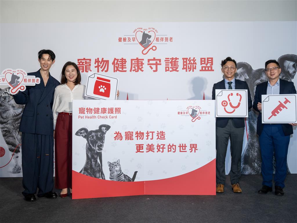 現場由聯盟成員法國皇家台灣香港總經理張堇琪、台灣英特威動物藥品台灣香港伴侶動物產品事業處處長李家榮、中華民國獸醫內科醫學會理事長鍾昇樺獸醫師及飼主代表夏和熙等人共同提倡及早健檢,結合科學照護與專業預防,期望用科學與專業來守護每一隻貓犬,為寵物創造更美好的世界。