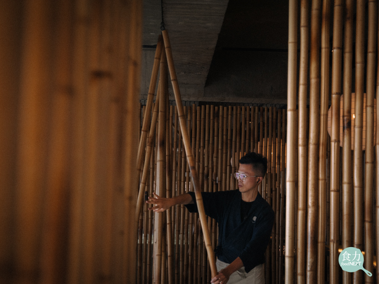 餐期間的空檔,外場人員因應午、晚客人與桌數重新安排桌椅,天花板燈光照射角度、竹簾寬度與高低也須隨之變化。(張偉明攝)
