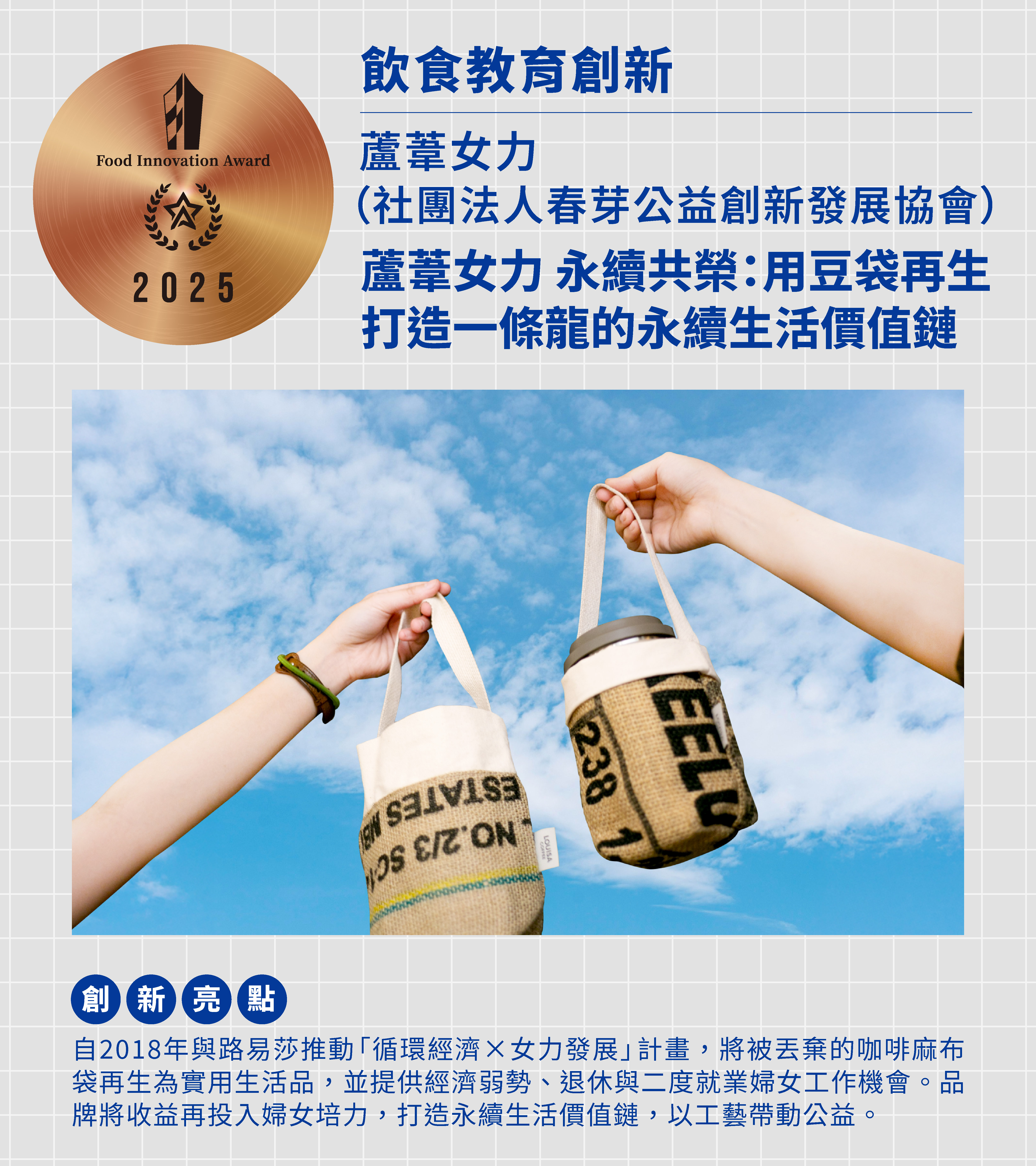 在永續意識高漲的時代,飲食不再只是滿足需求,更成為連結環境、健康與社會責任的重要媒介。從企業CSR行動、公益組織投入,到大學USR實踐,2025年食創獎「飲食教育創新」得獎案例展現跨界合作的多元樣貌,透過減塑循環、樂齡營養、女力培力與地方創生,讓飲食教育成為推動社會共好與永續發展的關鍵力量。