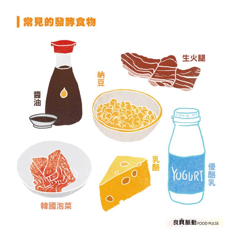 以大豆發酵的味噌為例,大豆中的大豆異黃酮經發酵後更容易被人體吸收,而大豆異黃酮具有抗氧化、抗過敏等功能,其他常見發酵食物包括:泡菜、醬油、魚露、起司、優酪乳、生火腿、醬油、酸菜、豆腐乳、醋、葡萄酒、紅茶等,也都能產生幫助人體對抗自由基的物質。