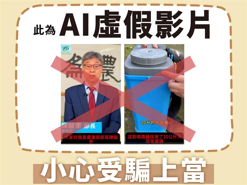 關於網路上流傳一則農業部陳駿季部長的短影音,內容指出「農業部與廠商合作販售噴霧器」、「農業部請民眾在家進行消毒,尤其是有養家畜的」等等,杜文珍也表示,防檢署已經對外作澄清,該影片是AI剪輯變造的虛假影片,請民眾勿信,也請大家協助澄清。同時杜文珍也再次強調,非洲豬瘟僅會感染豬隻,不會傷害毛小孩,飼主不必太過擔心。