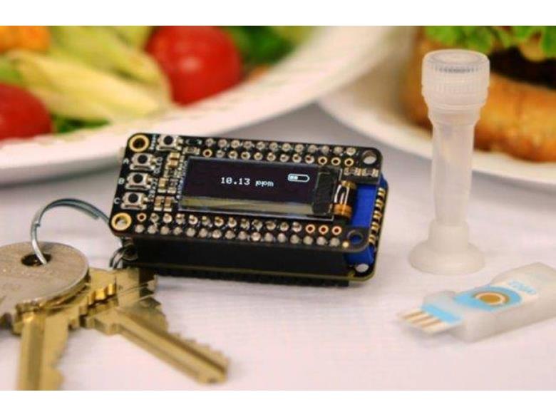 這個名為iEAT(Interated Exogenous Antigen Testing)的偵測組合,偵測器做成鑰匙圈的形狀,搭配萃取過敏原的套組(首圖右上塑膠管)與感應電極(首圖右下),偵測後的結果會以藍芽連線至手機顯示,並連線雲端資料庫。目前設計的原型機可以偵測5種主要的食品過敏原,分別為花生、小麥、牛奶、蛋、榛果。只需10分鐘就能測定食物中是否含有過敏原。