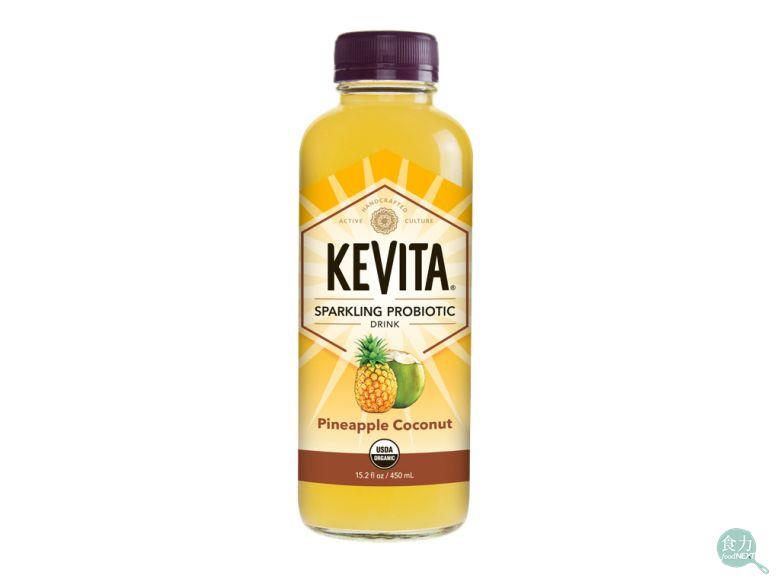 被百事收購的KeVita,是一家成立於2009年的美國益生菌飲料廠,包含生產益生菌飲料、紅茶菌飲料以及醋飲料的三大產品線,並以有機、無基因改造等為其飲品訴求,在北美地區有超過2萬個販售點,KeVita飲料皆以鳳梨椰子、扶桑花莓果等水果口味及添加4株益生菌為產品特色,相較於碳酸飲料來說在產品呈現健康形象的訴求更加明確。
