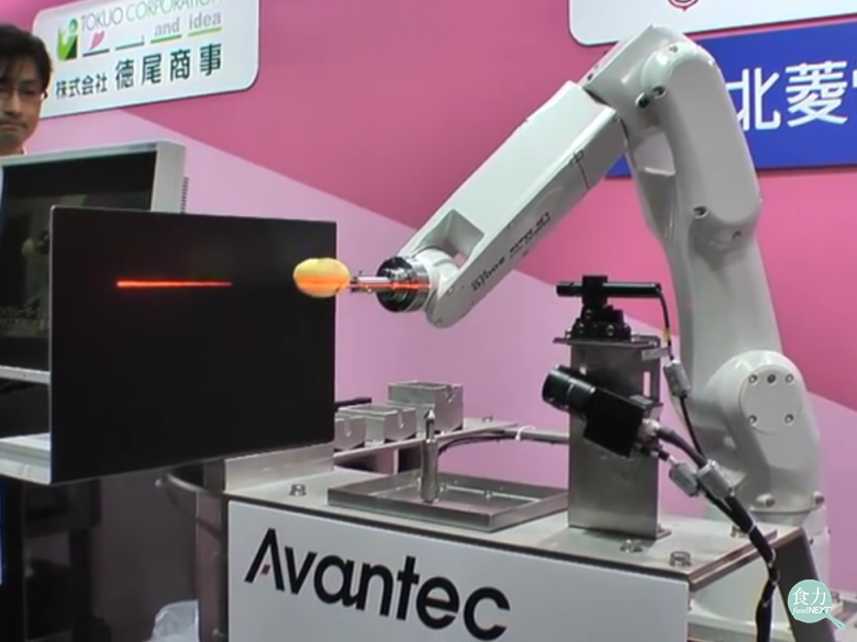 展場中除了有能夠應用在甜點製作的機器人外,也有能處理不規則狀農產品的機器人。參展廠商德尾商事展示的「去芽機器人」,能夠用電腦程式判斷表面凹凸,進一步鎖定馬鈴薯的芽眼位置,達到自動化去除芽眼的功能。在馬鈴薯等農產品的加工流程中,最費人工的就是這項去除芽眼的程序,自動化之後能夠大幅提升工作效率。