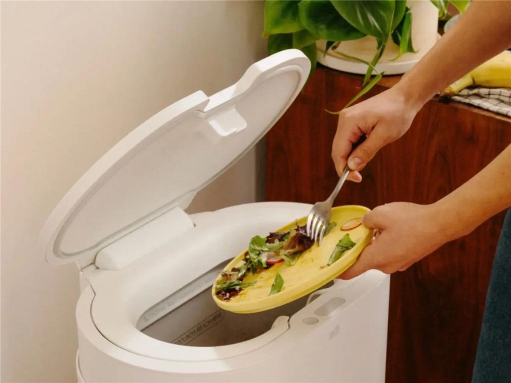 使用者將廚餘倒入Mill垃圾桶中,會自動脫水、磨碎食物將廚餘變成無味的渣狀。 (圖片來源:創業小聚提供)