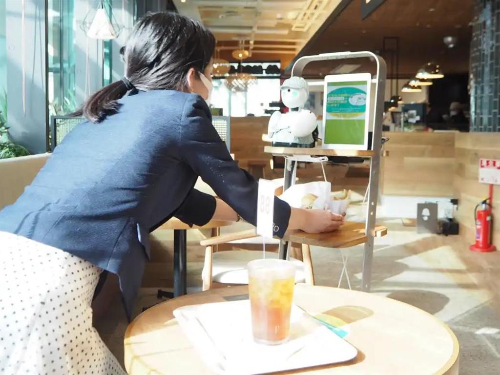 其實早在2020年7月,日本摩斯漢堡就曾在櫃檯設置連接遠距員工的點餐機器人。消費者點單時,可以跟直接透過機器人跟遠端的真人溝通,當時看準疫情下需要保護員工減少染疫風險,同時為消費者把關社交距離。