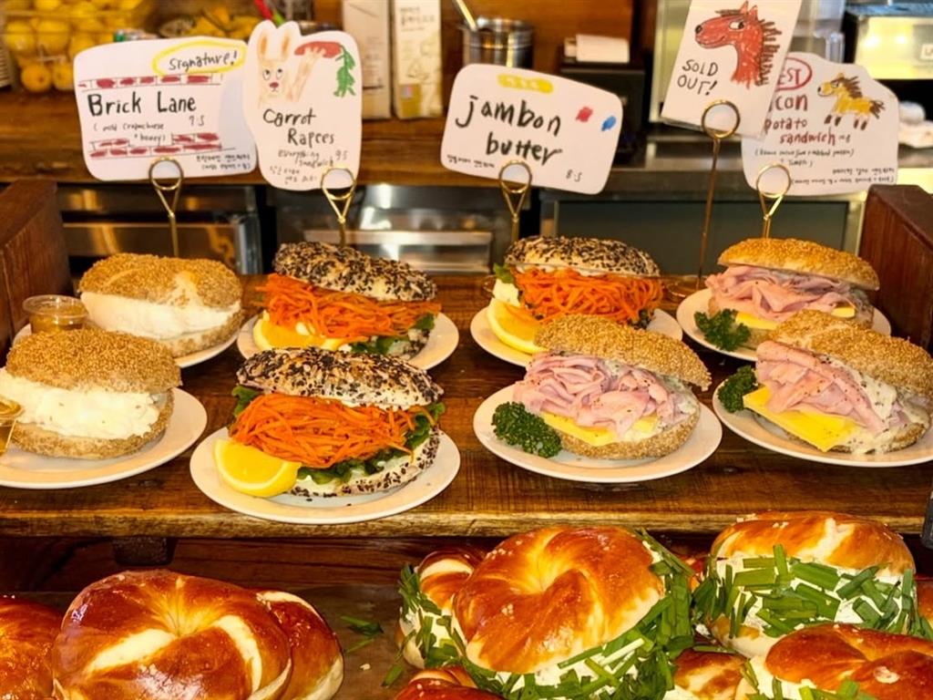 London Bagel Museum不只是賣貝果,而是將貝果變成精品甜點體驗。以其現烤、口味豐富的貝果為核心產品,提供多達20種以上的貝果口味,從經典的芝麻、藍莓,到創新的菠菜、黑橄欖、馬鈴薯起司等,滿足不同顧客的喜好。此外,他們還搭配多款自製奶油起司抹醬,例如招牌的香蔥椒鹽捲餅貝果與其搭配的蔥乳酪抹醬、松露蘑菇濃湯,以及各種貝果三明治組合,提供完整的早午餐體驗,讓產品具有高度辨識度且美味。其中不少品項更是每日限量、開門即售罄的熱門款。