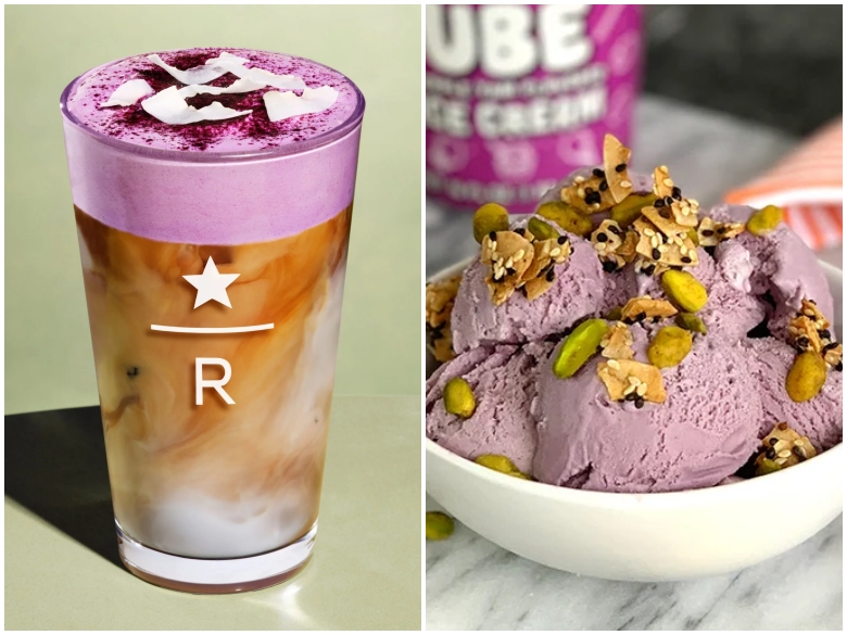 美國星巴克(Starbucks)與連鎖超市Trader Joe's相繼推出Ube相關產品,圖左為星巴克Ube椰奶拿鐵(Ube Coconut Latte),圖右為Trader Joe's的Ube口味冰淇淋(Ube Ice Cream)。(圖片來源:取自Starbucks、Trader Joe's)