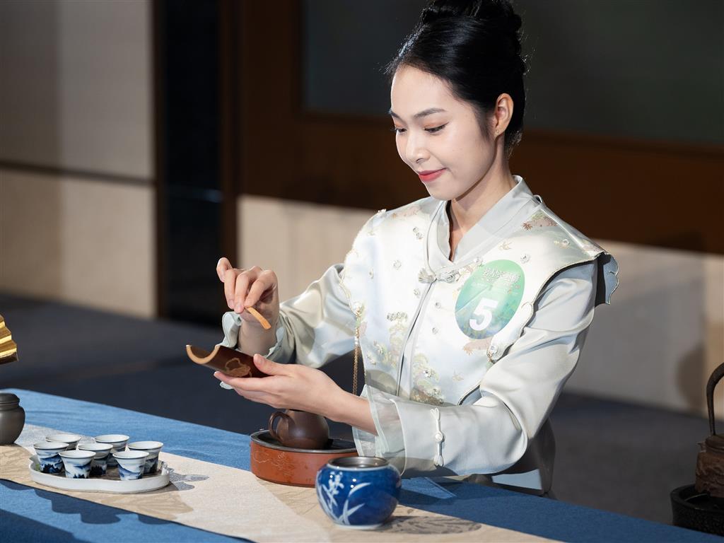 「澳門銀河」茶藝師團隊的盧紫瑤深諳嶺南地區工夫茶之道,以《船承粵韻匠心》為主題選用六堡茶為比賽用茶,從主題到茶藝展示傳遞出濃厚的文化價值。
