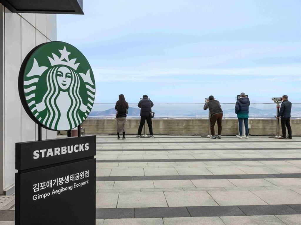位於南韓京畿道金浦市非軍事區(DMZ)邊緣的金浦市愛妓峰(Aegibong)和平生態公園內,2024年11月底開業的星巴克成為全球罕見能近距離望見北韓的商業據點。7個月內吸引超過12萬人次到訪,成為新興旅遊打卡熱點。這不僅是咖啡消費體驗的創新,更象徵南北韓和平願景與歷史轉型的具體表徵。