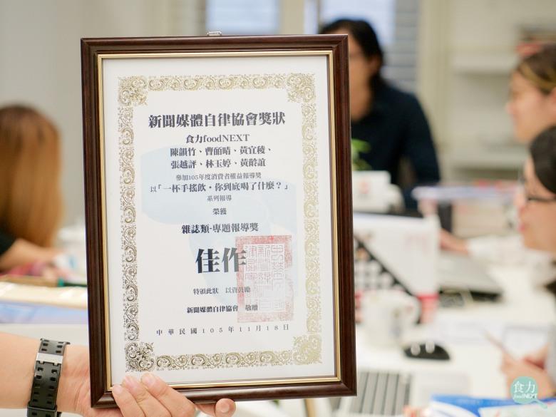 《食力》編輯陳韻竹、曹皕晴、黃宜稜、張越評、林玉婷、黃齡誼,以「一杯手搖飲,你到底喝了什麼?」作品,獲雜誌類專題報導獎佳作。