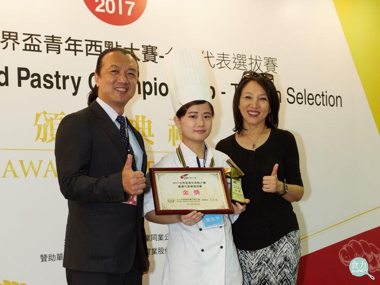UIBC世界青年西點大賽台灣代表賽冠軍簡如怡與作品合影。