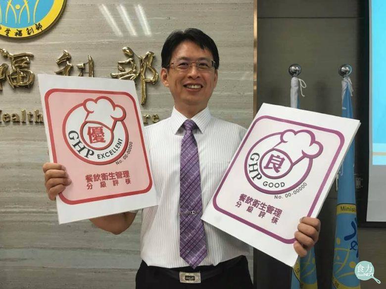 2010年,衛福部食藥署首先在台灣推動「餐飲衛生管理分級評核」,由食藥署制訂「餐飲衛生管理分級評核基本資料表」,交由各地衛生局評核,分為「優」與「良」兩種等級,採用自願申請的方式,由各地衛生局公告通過評核的業者名稱,並授予「餐飲衛生管理分級評核標章(優)」及「餐飲衛生管理分級評核標章(良)」標章(有限期限2年),讓業者可貼於店面顯眼處。