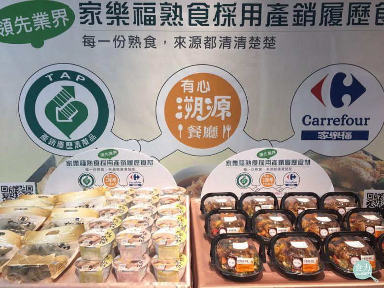 過往量販通路中販售的熟食若有使用產銷履歷認證的食材並不會被標示於產品包裝上而被辨識,家樂福量販通路透過使用產銷履歷認證食材並串連溯源平台,在熟食包裝上掃描QR Code,熟食的食材原料與其生產過程便能公開呈現。