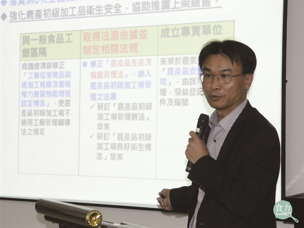 農產品初級加工亦將建立管理制度,協助農民提升農產品附加價值,擴大農產品二級產業。持續獎勵有機耕作,相關之政策支持措施將繼續維持,包含:貫徹執行完善產銷資訊平台、新政策研擬及相關政策措施調整、關稅配額制度調整、多元加工研發利用、建立旗艦物流中心及區域冷鏈系統、與民間資源合作、提升外銷競爭力、調整市場結構及通路等8大措施,確保敏感性農產品之價格穩定,為台灣農業建立堅強後盾,保障農民權益,也為台灣食材來源奠定更安全穩定的基礎。