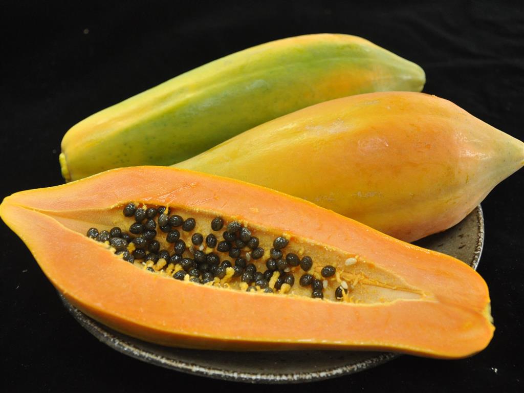 木瓜通常都在果溝處開始轉色時採收,並在運輸過程中催熟,台南場提醒消費者,在選購上建議挑選外皮綠中帶黃,轉色處黃中透紅,果皮平滑細緻,沒有擦壓傷或病蟲害,外形端正飽滿的木瓜為佳。
